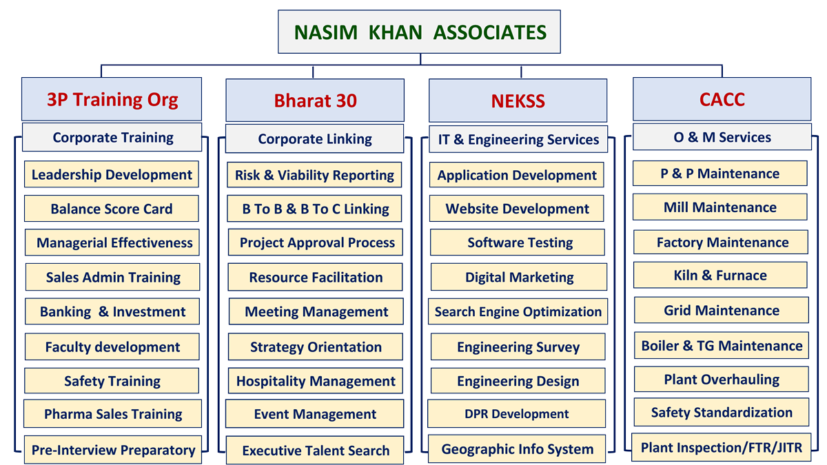 Nasim Khan, being a corporate trainer & coach since 1995, has been able establish himself as brand in the field of Learning & Development.3P Training, CACC, Bharat 30 Corporate Links, Sebadharitri and HCDC are the nomenclatures given to the set of corresponding area of services and his headed concerned self employed professional in their Individual capacity.